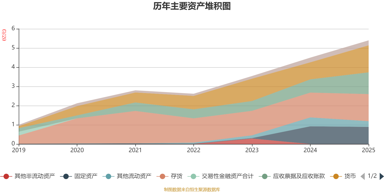 资产重大变化方面,截至2025年末,公司货币资金较上年末增加58.79%,占公司总资产比重上升6.37个百分点;应收票据及应收账款较上年末增加64.45%,占公司总资产比重上升5.66个百分点;其他流动资产较上年末减少36.23%,占公司总资产比重下降4.87个百分点;固定资产较上年末减少2.88%,占公司总资产比重下降3.9个百分点。