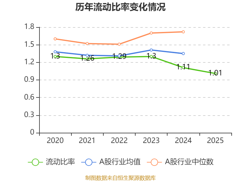 2025年,公司流动比率为1.01,速动比率为0.82。
