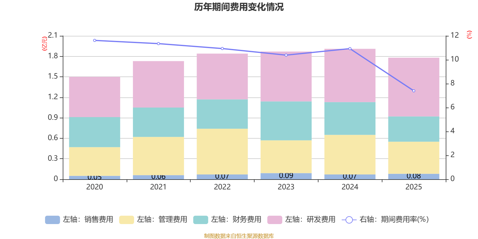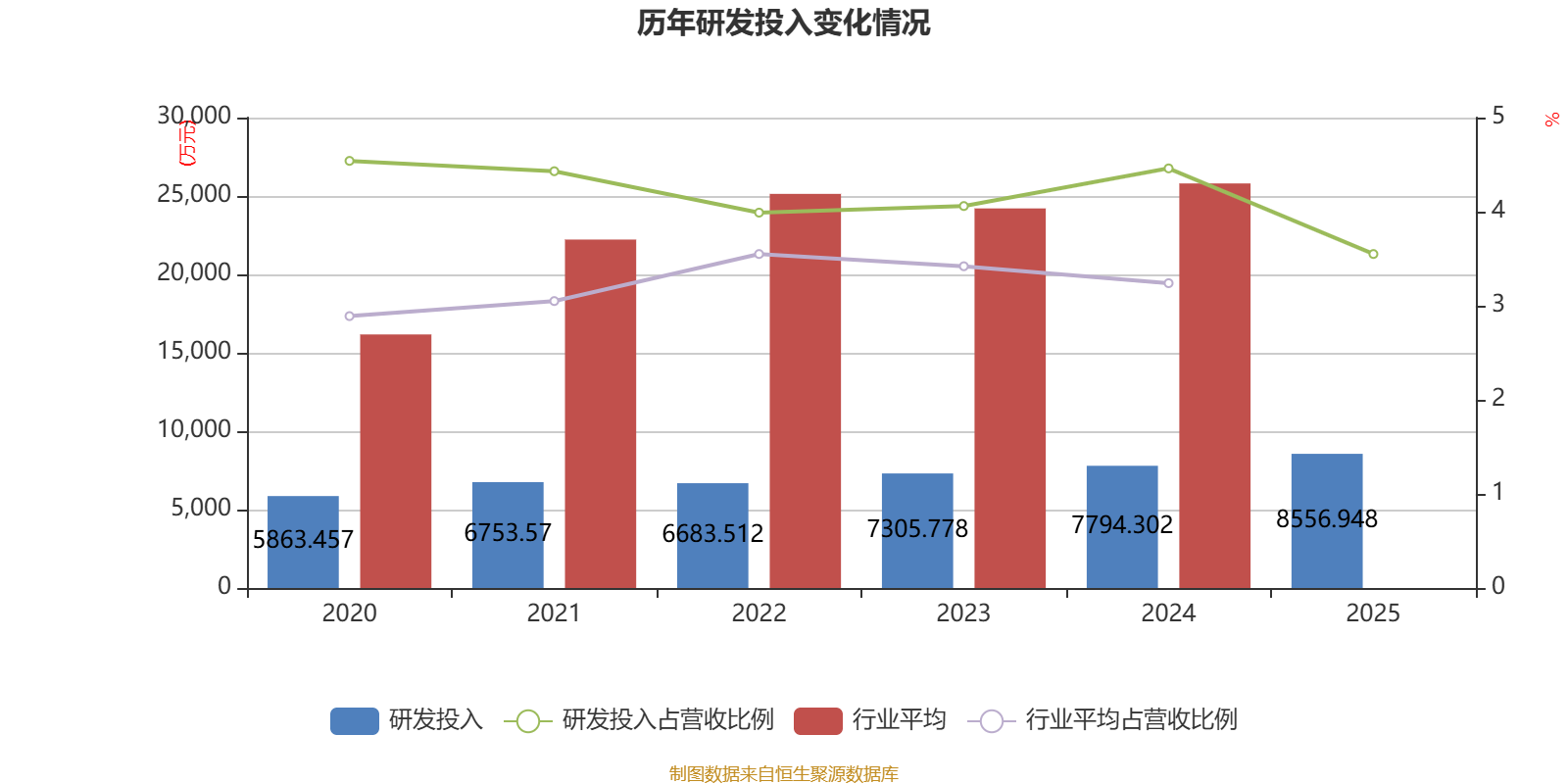2025年全年,公司研发投入金额为8556.95万元,同比增长9.78%;研发投入占营业收入比例为3.55%,相比上年同期下降0.91个百分点。此外,公司全年研发投入资本化率为0%。