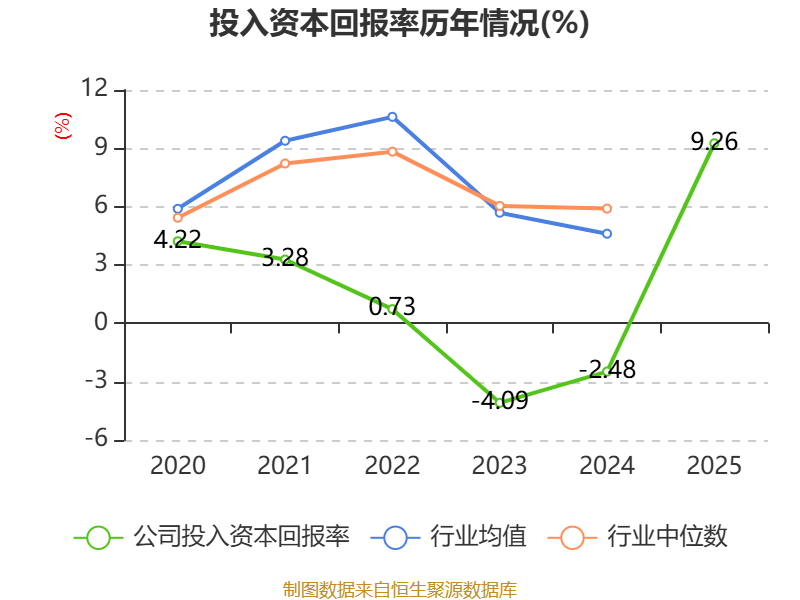 数据显示,2025年公司加权平均净资产收益率为13.66%,较上年同期上升25.15个百分点。公司2025年投入资本回报率为9.26%,较上年同期上升11.74个百分点。