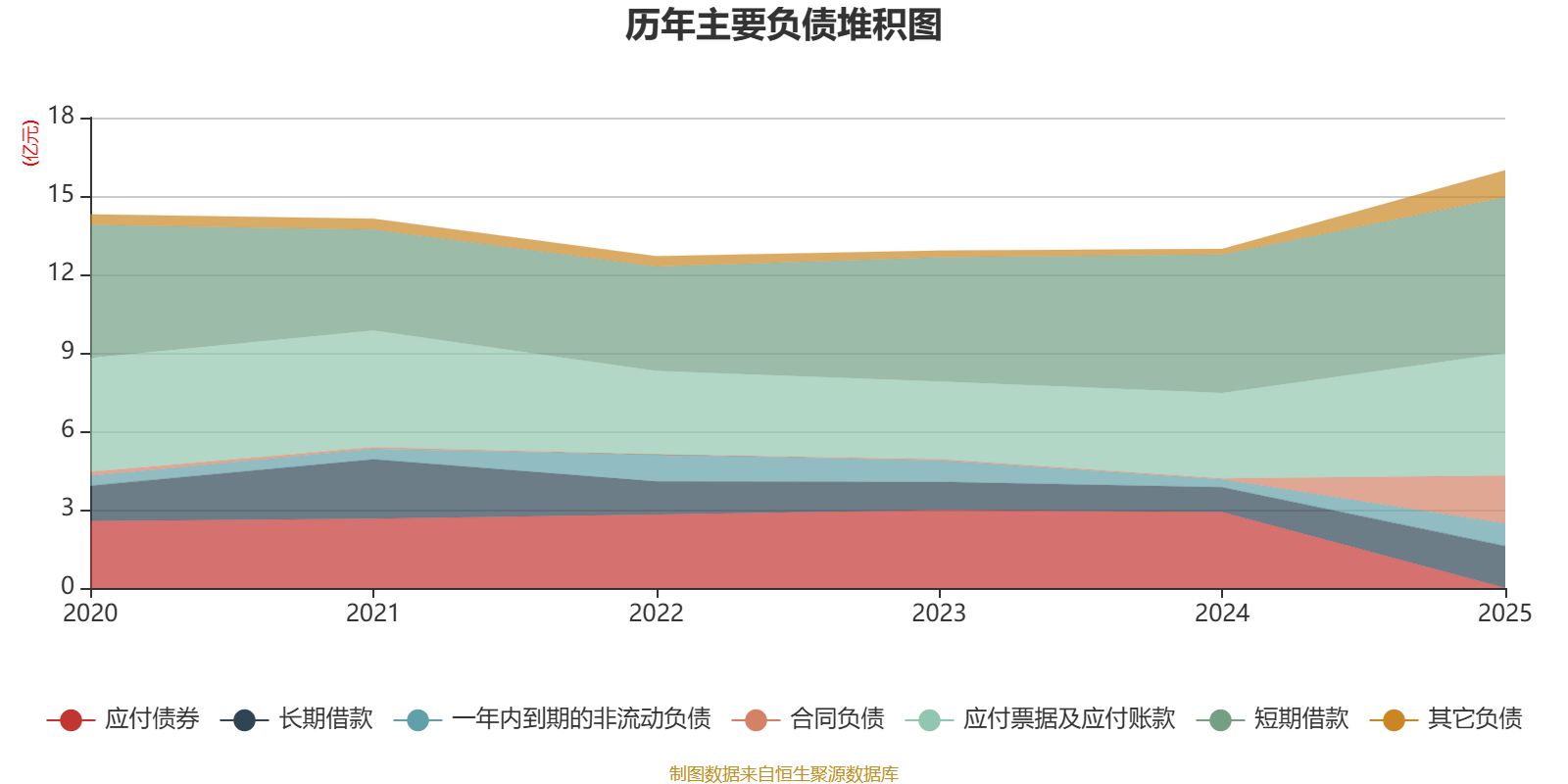 负债重大变化方面,截至2025年末,公司应付债券较上年末减少100%,占公司总资产比重下降14.1个百分点;合同负债较上年末增加5061.43%,占公司总资产比重上升6.36个百分点;短期借款较上年末增加12.56%,占公司总资产比重下降4.43个百分点;长期应付款合计占公司总资产的1.96%,上年末为0。