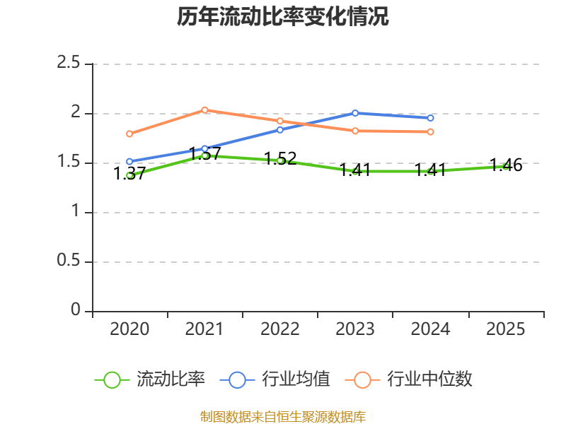 2025年,公司流动比率为1.46,速动比率为0.58。