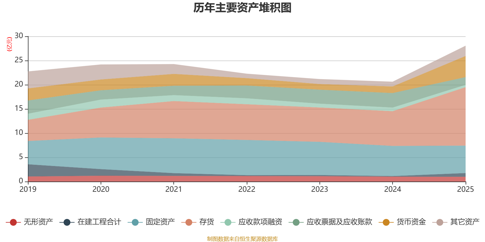 资产重大变化方面,截至2025年末,公司固定资产较上年末减少8.83%,占公司总资产比重下降9.96个百分点;货币资金较上年末增加221.25%,占公司总资产比重上升8.95个百分点;应收票据及应收账款较上年末减少46.81%,占公司总资产比重下降8.86个百分点;存货较上年末增加68.4%,占公司总资产比重上升8.27个百分点。
