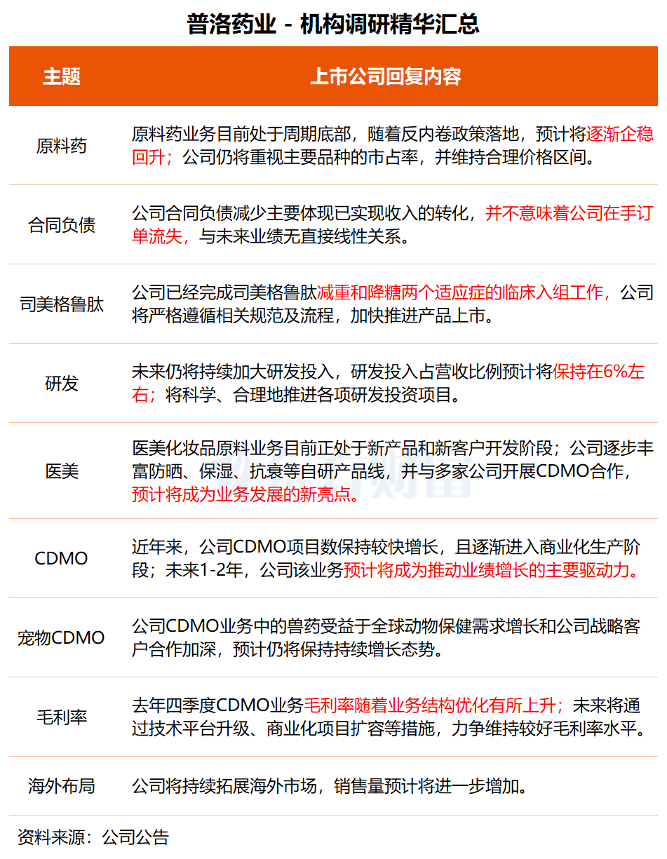 普洛药业在交流中特别指出,未来1-2年,公司CDMO业务预计将成为推动业绩增长的主要驱动力。CDMO业务中的兽药受益于全球动物保健需求增长和公司战略客户合作加深,预计仍将保持持续增长态势。