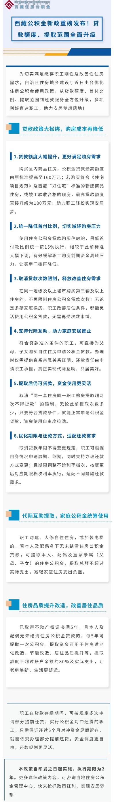 西藏公积金新政发布 贷款额度、提取范围升级