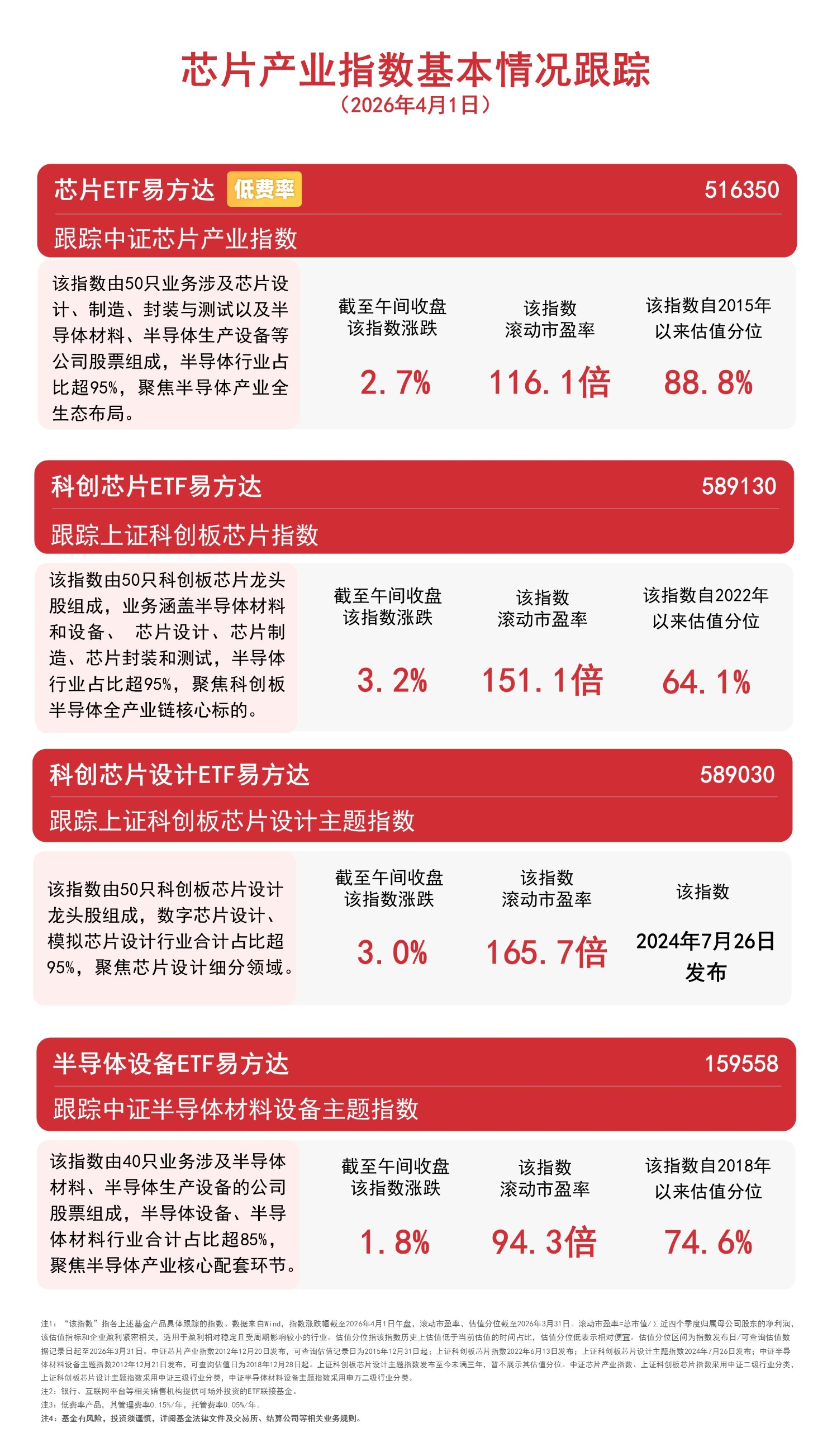 4月1日,半导体产业链股集体走强,截至午间收盘,芯原股份涨超9%,寒武纪、华虹公司、天岳先进涨超6%。指数方面,上证科创板芯片指数上涨3.2%,上证科创板芯片设计主题指数上涨3%,中证芯片产业指数上涨2.7%,中证半导体材料设备主题指数上涨1.8%。