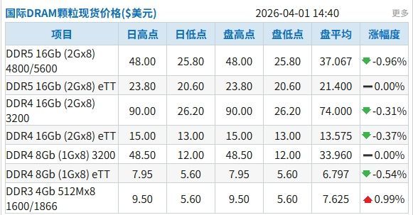 机构:DDR4和DDR5颗粒整体小幅度下跌