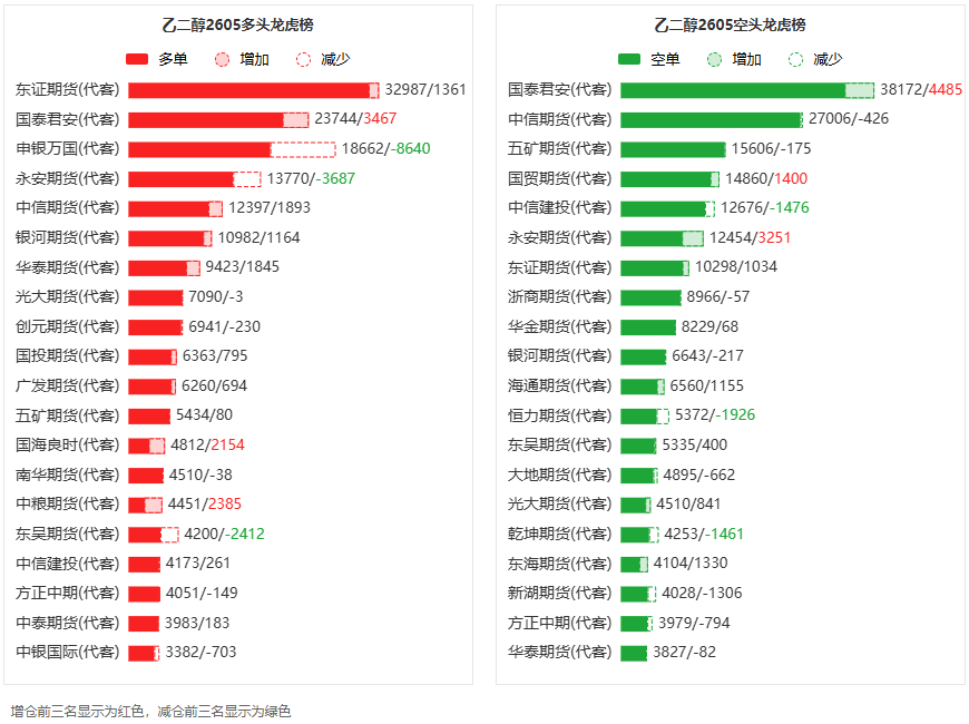 乙二醇龙虎榜 | 主力合约今日增仓下行 多方呈退场态势 空方呈进场态势