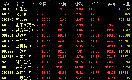 创新药概念今日走势强劲,截至收盘,广生堂、艾迪药业、睿智医药20%涨停,益方生物、诚达药业涨超15%,百利天恒涨超12%,凯莱英、昂利康等亦涨停,津药药业斩获4连板。