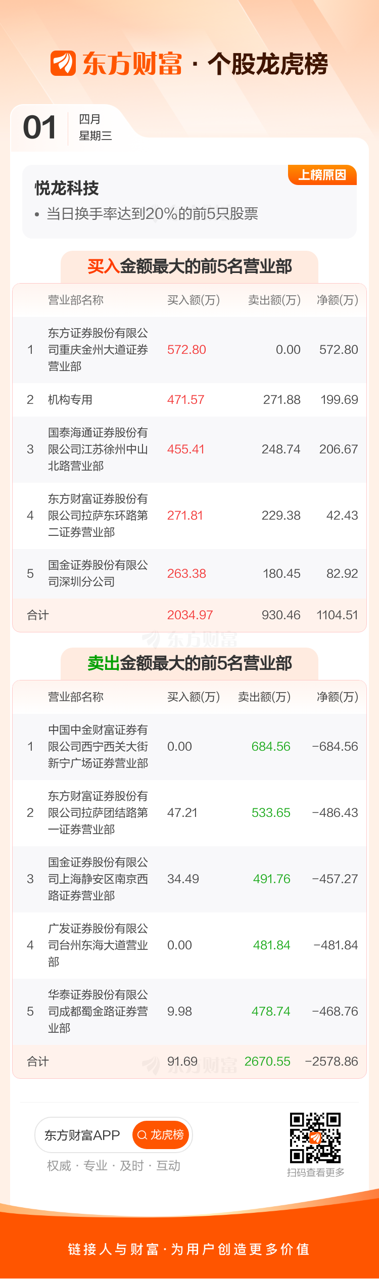 交易所2026年4月1日公布的交易公开信息显示,悦龙科技因成为当日换手率达到20%的前5只股票上榜。悦龙科技当日收报24.58元,涨跌幅-2.81%,偏离值36.65%,换手率36.65%,成交额1.80亿。