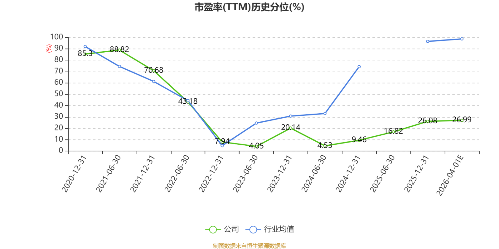 以本次披露业绩预告均值计算,公司近年市盈率(TTM)图如下所示: