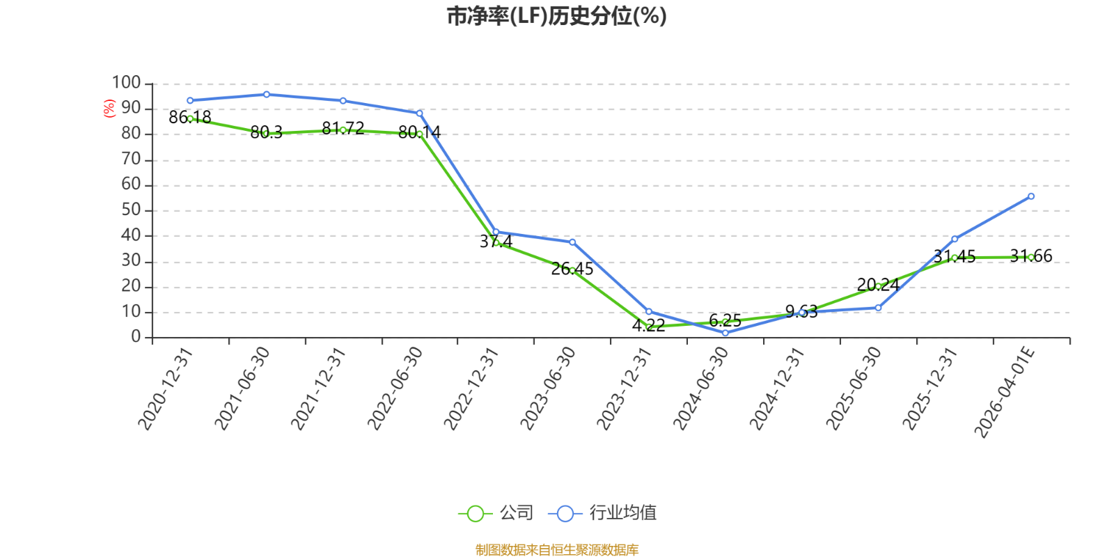 市盈率、市净率为负时,不显示当期分位数,会导致折线图中断。