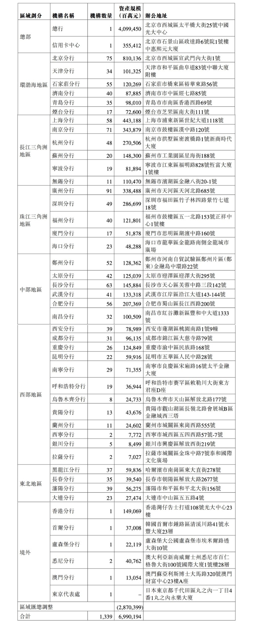 2026年4月1日光大银行在公告中更新后的分支机构资产规模数据