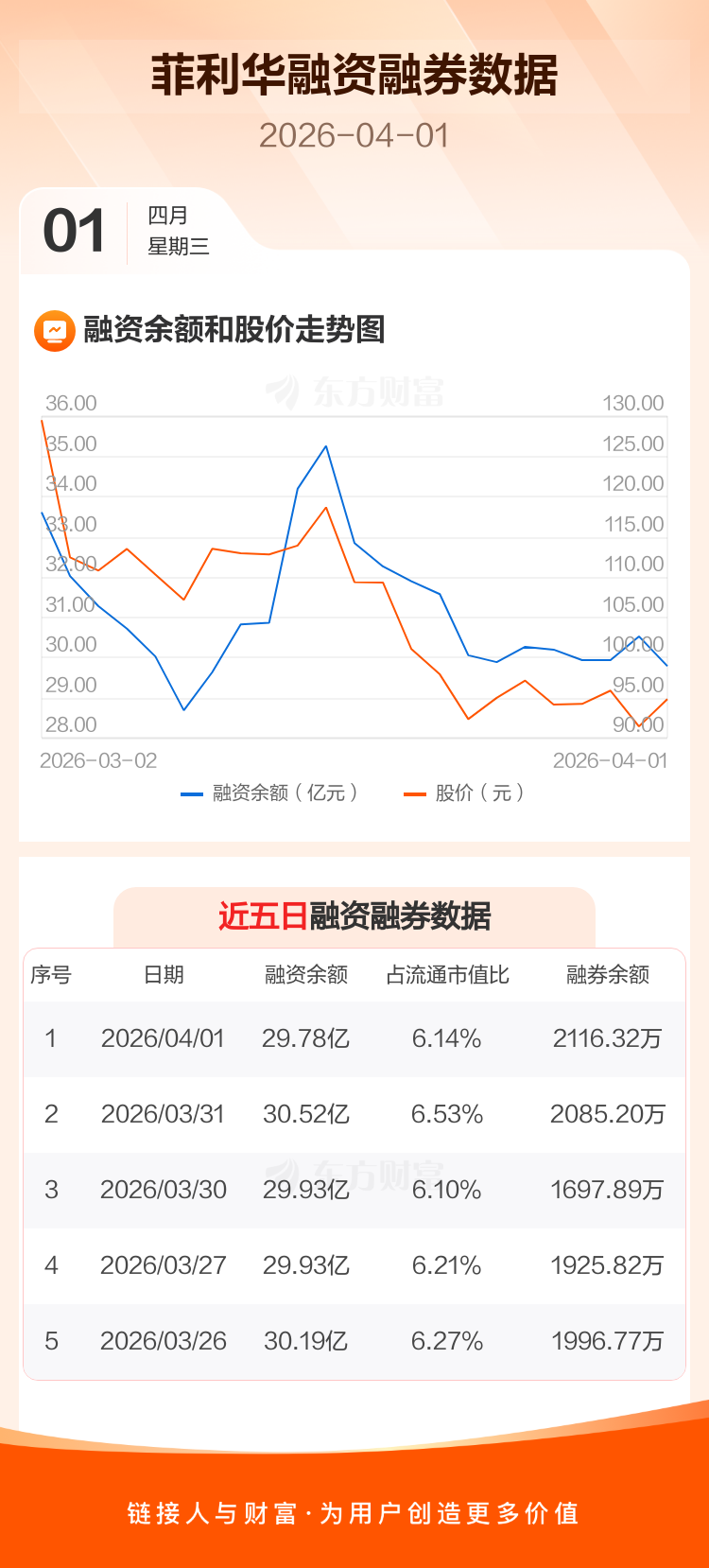 交易所最新数据显示,菲利华于2026年4月1日获融资买入1.56亿元,融资偿还2.30亿元,当日融资净偿还7454.76万元。目前,该股融资余额29.78亿,占流通市值比例为6.14%。