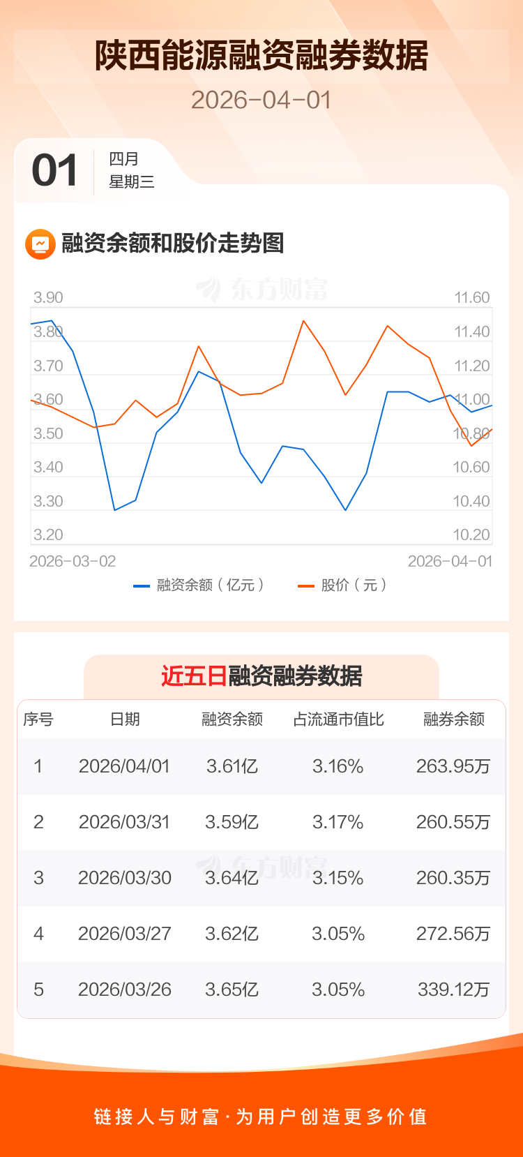 交易所最新数据显示,陕西能源于2026年4月1日获融资买入1613.58万元,融资偿还1420.25万元,当日融资净买入193.32万元。目前,该股融资余额3.61亿,占流通市值比例为3.16%。