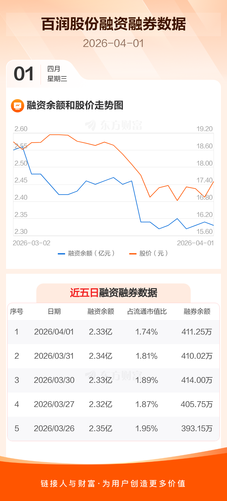 交易所最新数据显示,百润股份于2026年4月1日获融资买入1366.45万元,融资偿还1453.39万元,当日融资净偿还86.94万元。目前,该股融资余额2.33亿,占流通市值比例为1.74%。