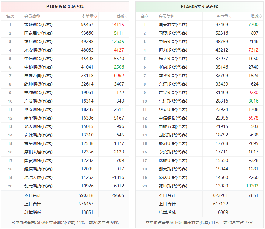 PTA龙虎榜 | 主力合约今日增仓上行 多空双方均呈进场态势
