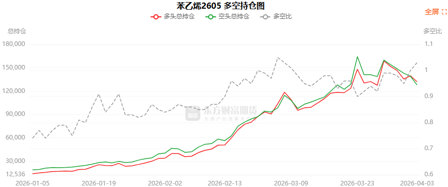 总体而言,苯乙烯2605合约今日减仓上行,多空持仓排名前20席中,多空双方均呈退场态势,多头退场意愿弱于空头。