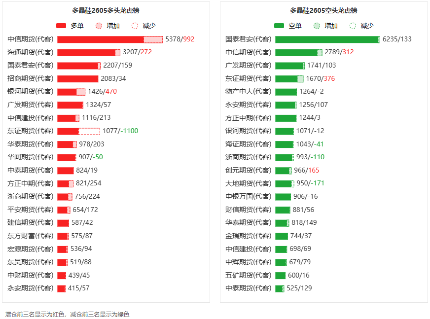 多晶硅龙虎榜 | 主力合约今日增仓下行 多空双方均呈进场态势