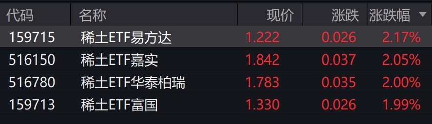 受盘面影响,稀土相关ETF涨约2%。