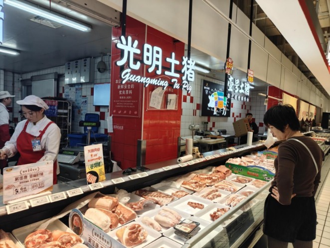 便宜到什么程度?以上海市一家大润发超市为例,其售卖的带皮去骨前腿肉每斤仅6.99元。同一商圈的盒马NB,800克装的冰鲜猪筒骨每盒售价也仅12.5元。