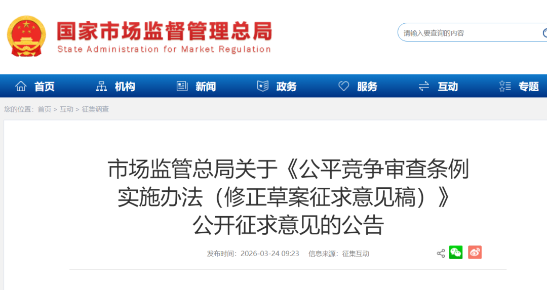 为深入贯彻党的二十大和二十届历次全会精神,认真落实中央经济工作会议部署,市场监管总局对《公平竞争审查条例实施办法》进行修改完善,进一步健全审查机制、规范审查流程、压实审查责任,切实加强公平竞争审查刚性约束,坚决破除地方保护和市场分割问题,促进加快建设全国统一大市场。经过前期调研、专家论证、征求意见,研究形成修正草案征求意见稿及其说明,现向社会公开征求意见。公众可通过以下方式提出反馈意见: