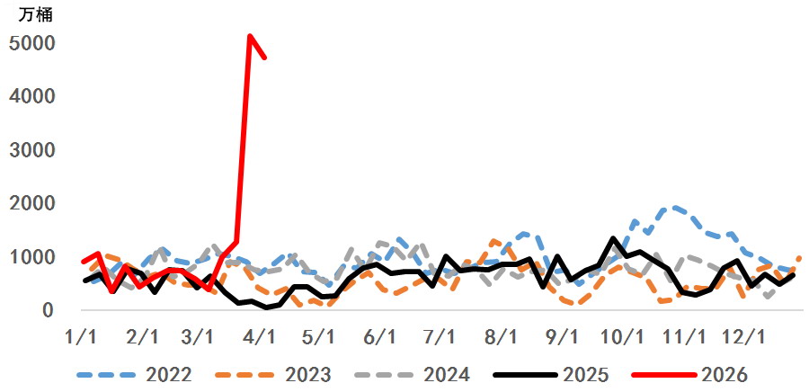 情形三:战事持续升级,烈度扩大。鉴于美国与伊朗的诉求差异较大,战事存在持续升级的可能性。在该情形下,伊朗全面封锁霍尔木兹海峡并加大对能源设施、航运线路的打击,美以扩大打击范围并强化军事部署,中东多国或卷入战事。目前,全球石油海运通道已中断超1个月。若战事持续升级,全球原油供应缺口急剧扩大,国际油价将维持上行走势,有望突破前期高点。