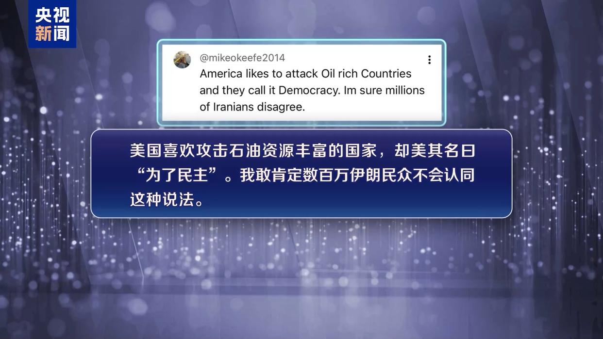 “美国喜欢攻击石油资源丰富的国家,却美其名曰‘为了民主’。我敢肯定数百万伊朗民众不会认同这种说法。”