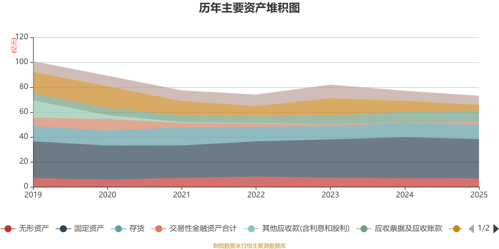 资产重大变化方面,截至2025年末,公司货币资金较上年末减少47.97%,占公司总资产比重下降5.06个百分点;交易性金融资产合计较上年末增加1434%,占公司总资产比重上升2.56个百分点;存货较上年末增加2.11%,占公司总资产比重上升1.13个百分点;应收票据及应收账款较上年末增加3.43%,占公司总资产比重上升1.04个百分点。