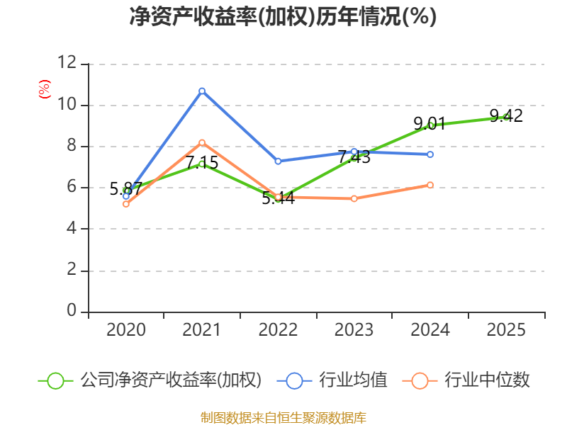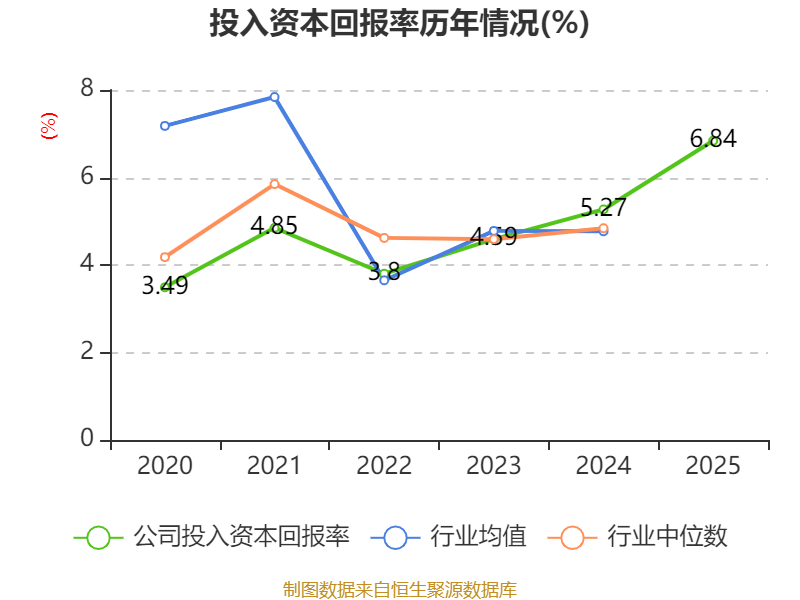 数据显示,2025年公司加权平均净资产收益率为9.42%,较上年同期上升0.41个百分点。公司2025年投入资本回报率为6.84%,较上年同期上升1.57个百分点。