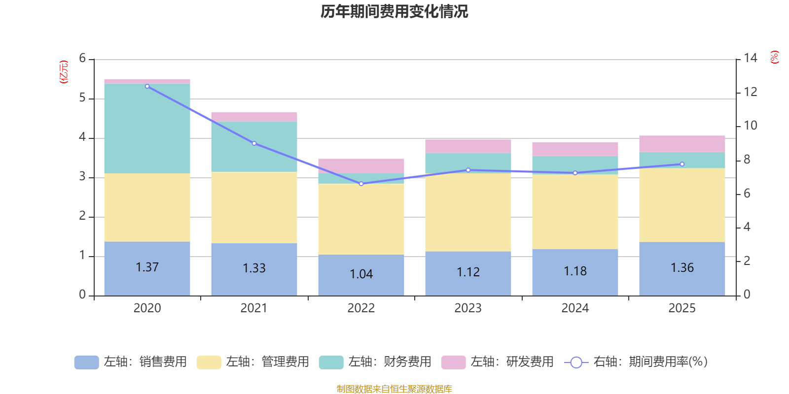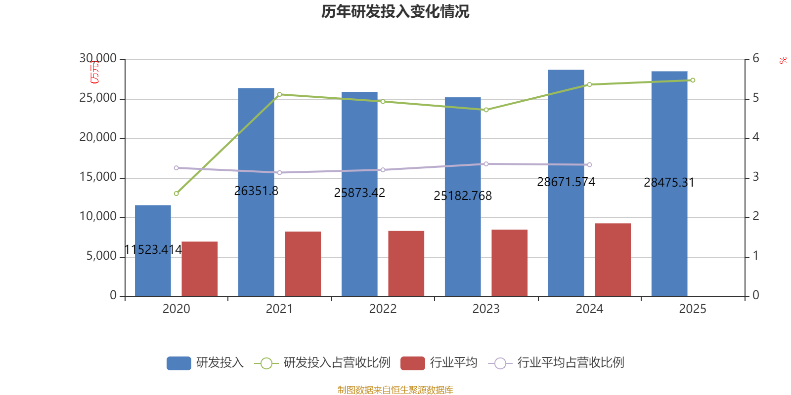 2025年全年,公司研发投入金额为2.85亿元,同比下降0.68%;研发投入占营业收入比例为5.47%,相比上年同期上升0.11个百分点。此外,公司全年研发投入资本化率为0%。