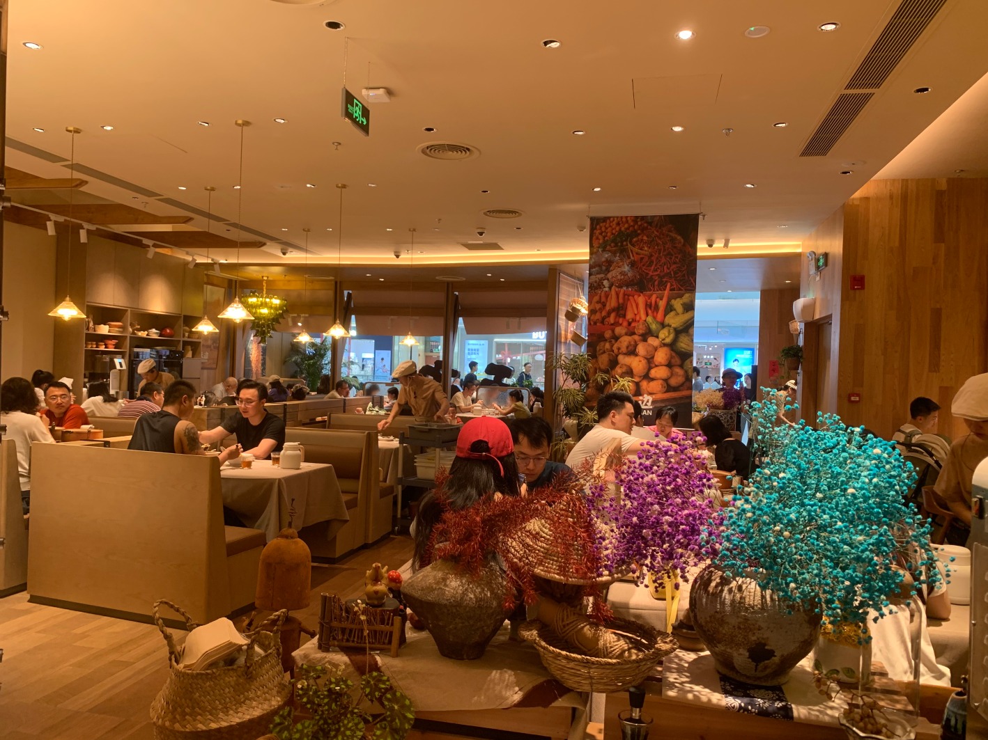 4月6日中午将近1点,记者来到位于深圳福田卓悦汇五楼的天边砂锅焖面,看到门口还有少部分人在排队。可以看得出该店是崭新的店面,装修得比较别致和古朴,很有民族风情。店内空间不大不小,厨房区域是明厨亮灶,用餐高峰期人气比较高。