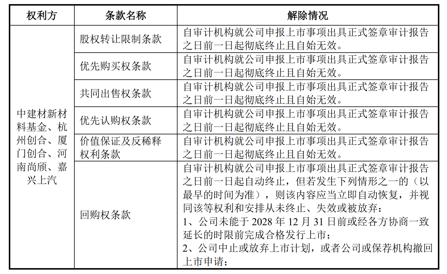 此外,尽管五星新材在招股书中表示已清理了对赌条款,但细读可发现,所谓的“清理”附带了强有力的“恢复条款”。