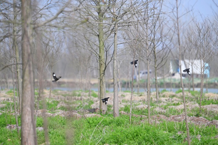 春风拂过长江入海口,崇明岛的田埂间已泛起新绿,北归的候鸟掠过整齐的条田,落在中兴镇富圩村的林梢与水畔。