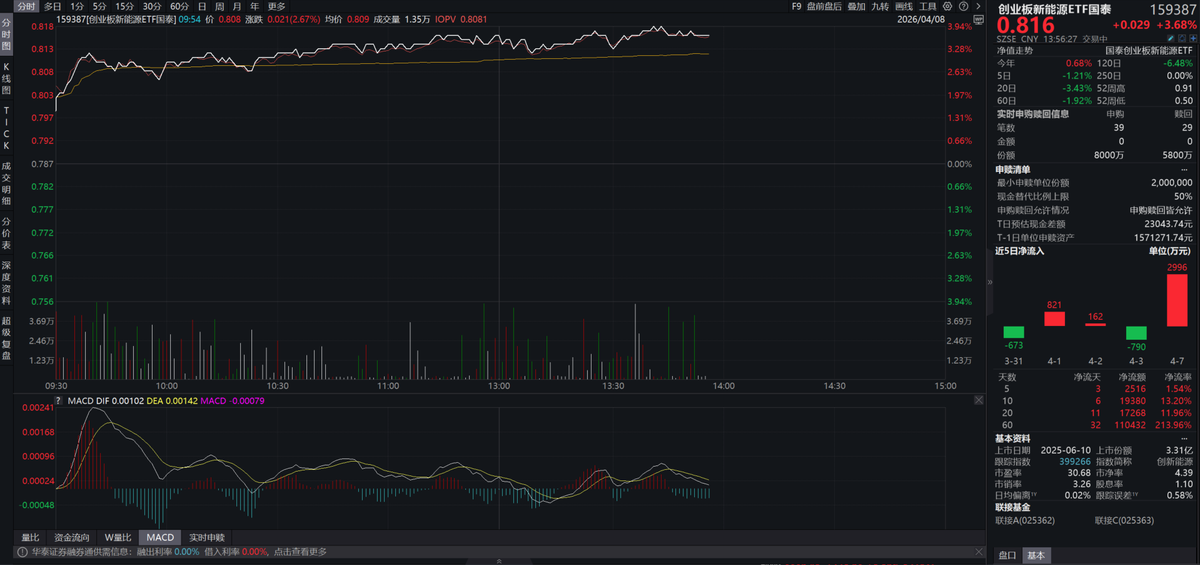 所以现在的新能源赛道,真的是要政策有政策,要订单有订单。如果大家想布局新能源,又不想纠结单一标的,可以关注一下创业板新能源ETF国泰(159387)。它的持仓很有特点,储能+固态占比超60%,氢能相关含量约35%,光伏设备含量也有25%,一站式覆盖了风光锂储氢多个核心细分方向。