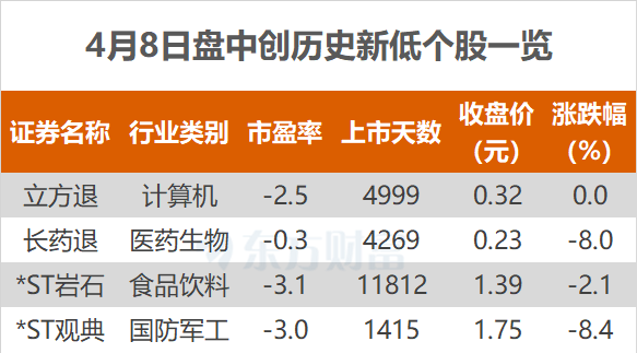 东方财富Choice数据显示,今日有4只个股盘中股价创历史新低。