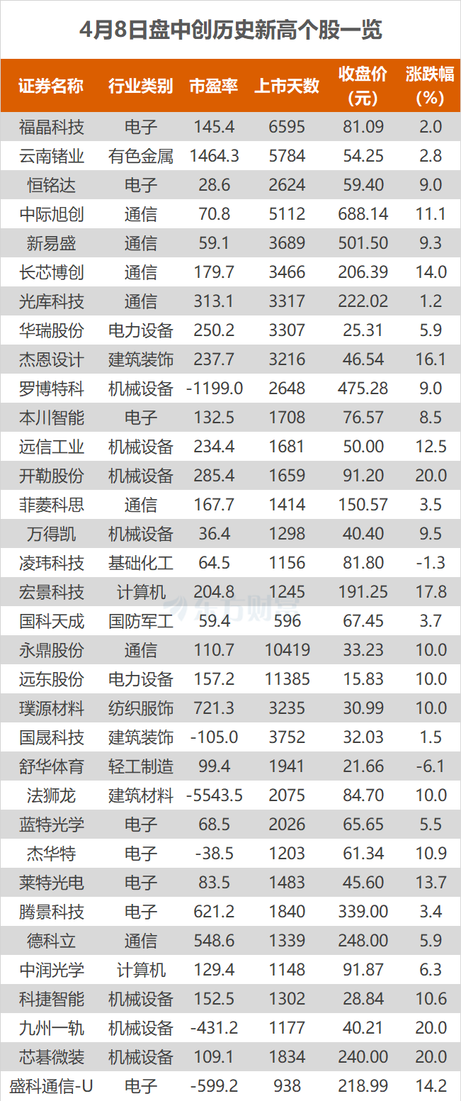 东方财富Choice数据显示,今日有34只个股盘中股价创历史新高,分别为永鼎股份、国晟科技等。