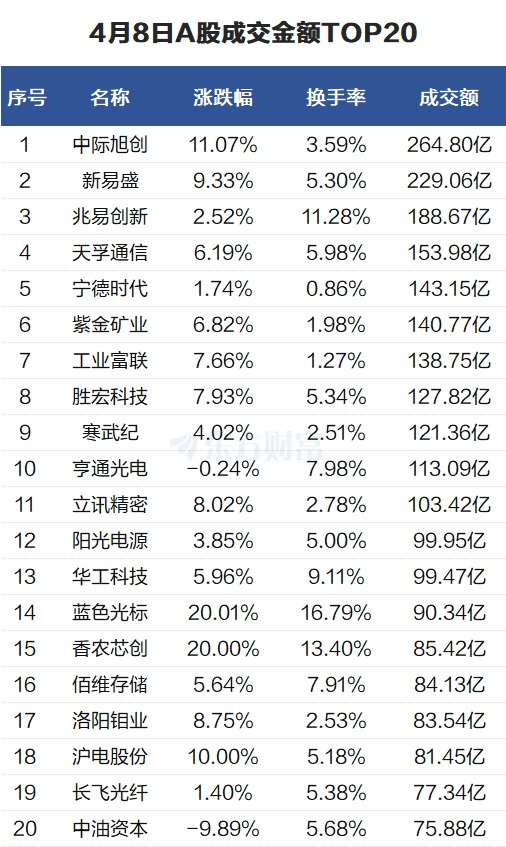 4月8日,上证指数涨2.7%,收报3995点;深证成指涨4.79%,收报14042.5点;创业板指涨5.91%,收报3347.61点。