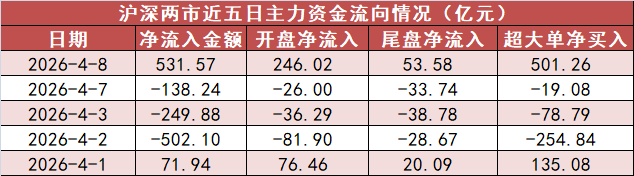 今日A股市场主力资金开盘净流入246.02亿元,尾盘净流入53.58亿元,A股市场全天资金净流入531.57亿元。
