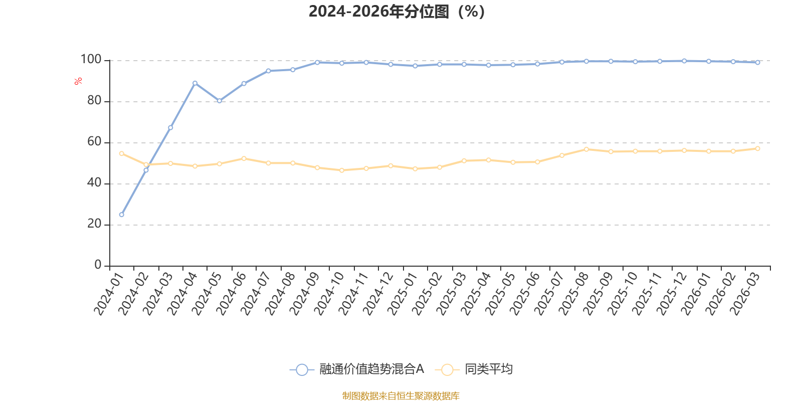 通过所选区间该基金净值增长率分位图,可以观察该基金与同类基金业绩比较情况。图为坐标原点到区间内某时点的净值增长率在同类基金中的分位数。