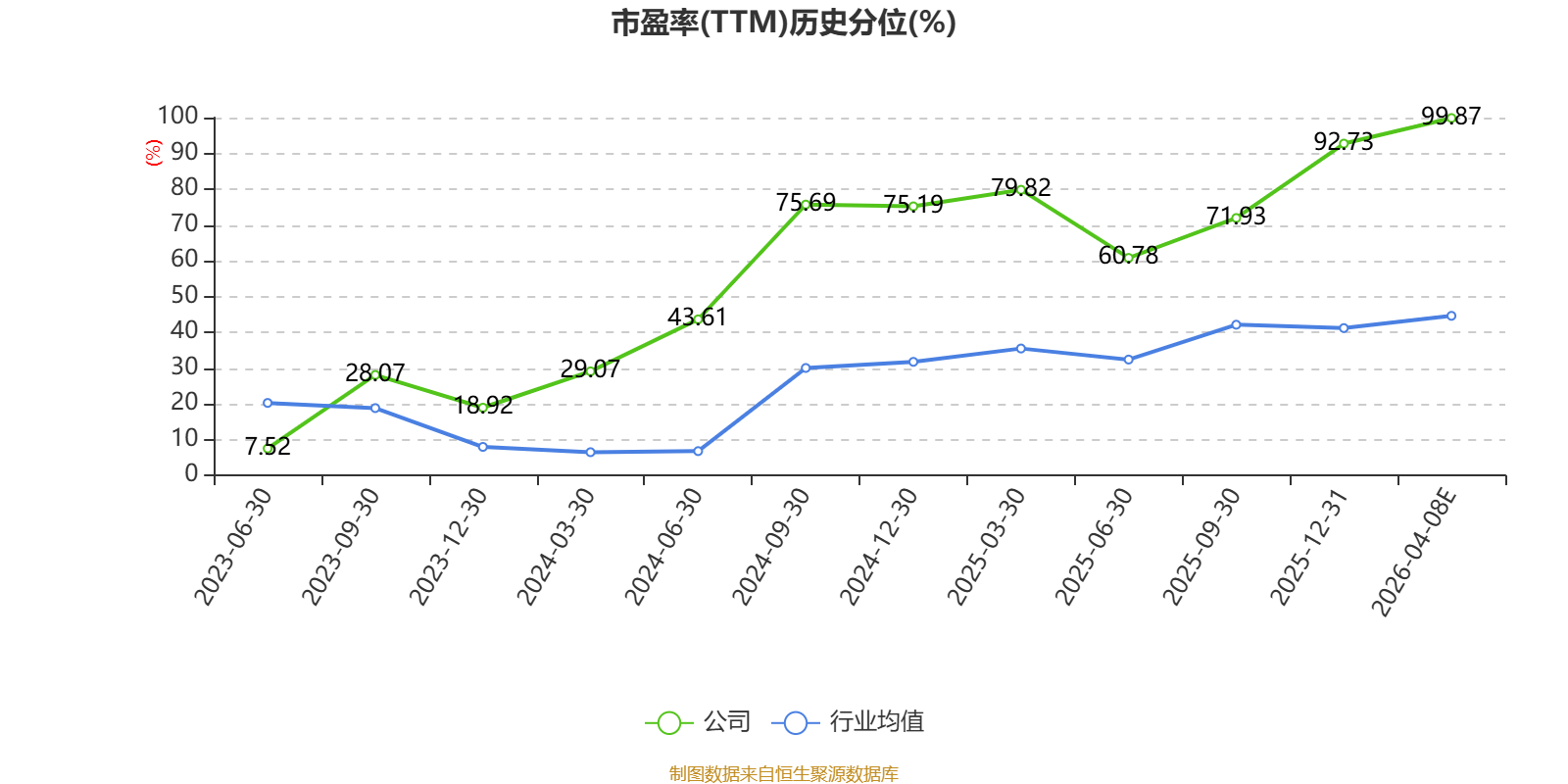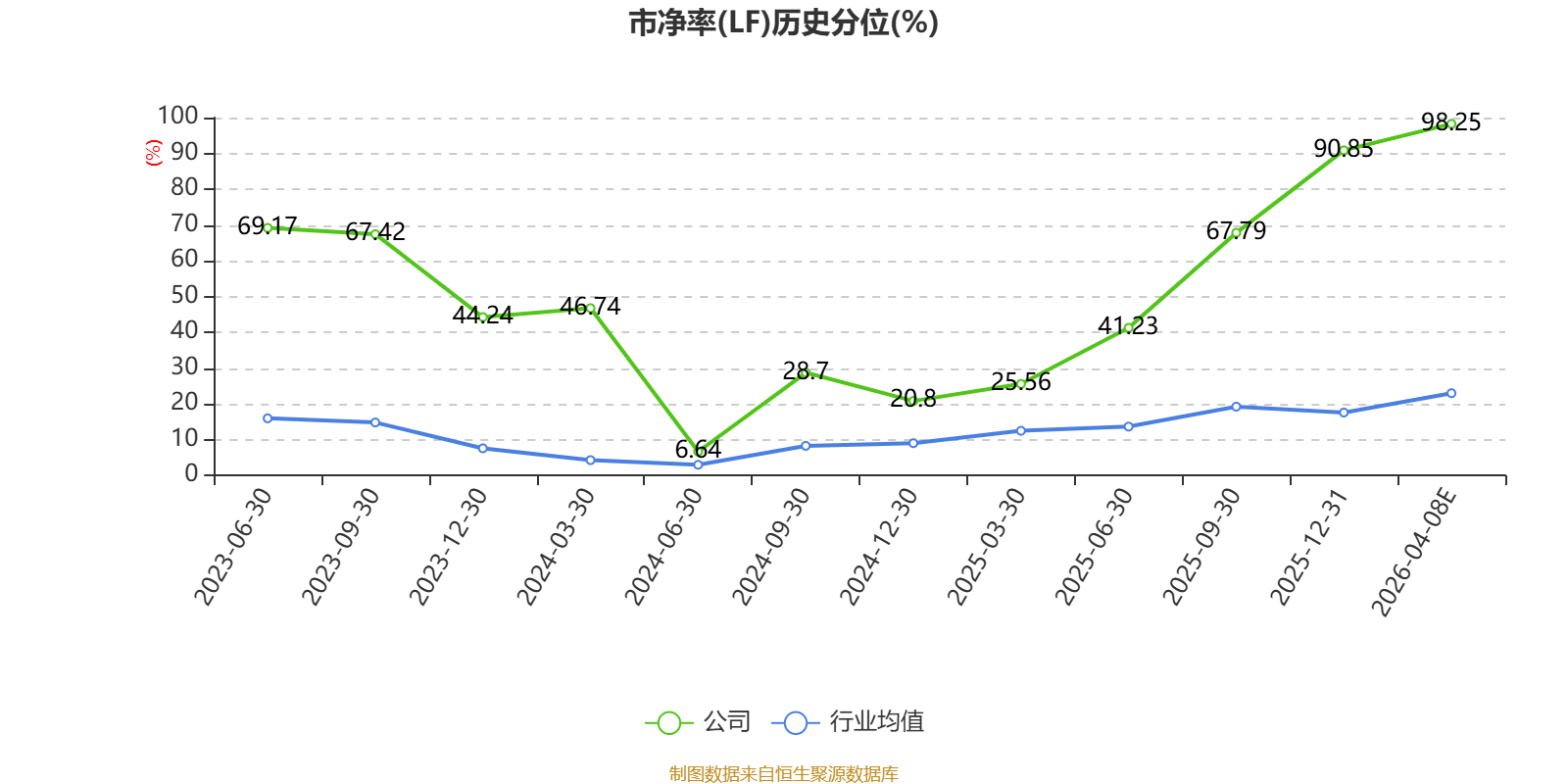 市盈率、市净率为负时,不显示当期分位数,会导致折线图中断。