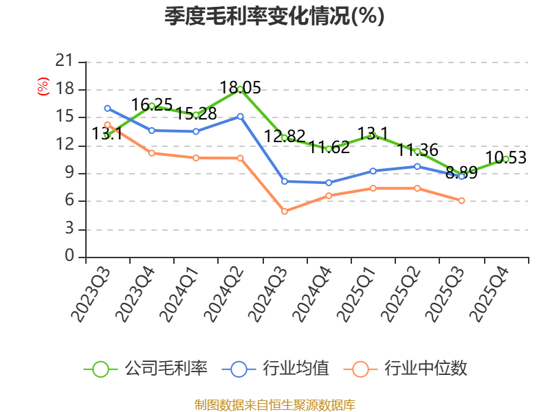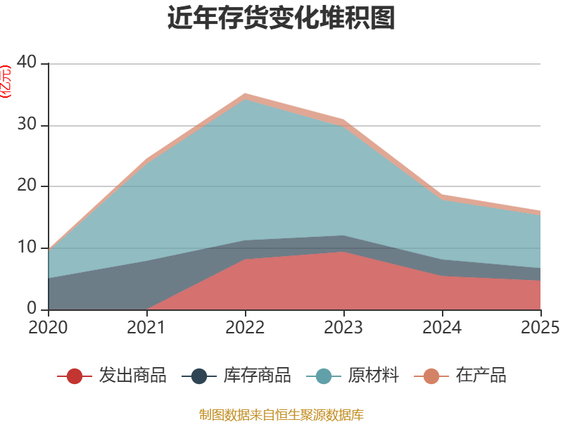 从存货变动来看,截至2025年末,公司存货账面价值为16.04亿元,占净资产的9.76%,较上年末减少2.64亿元。其中,存货跌价准备为5285.91万元,计提比例为3.19%。