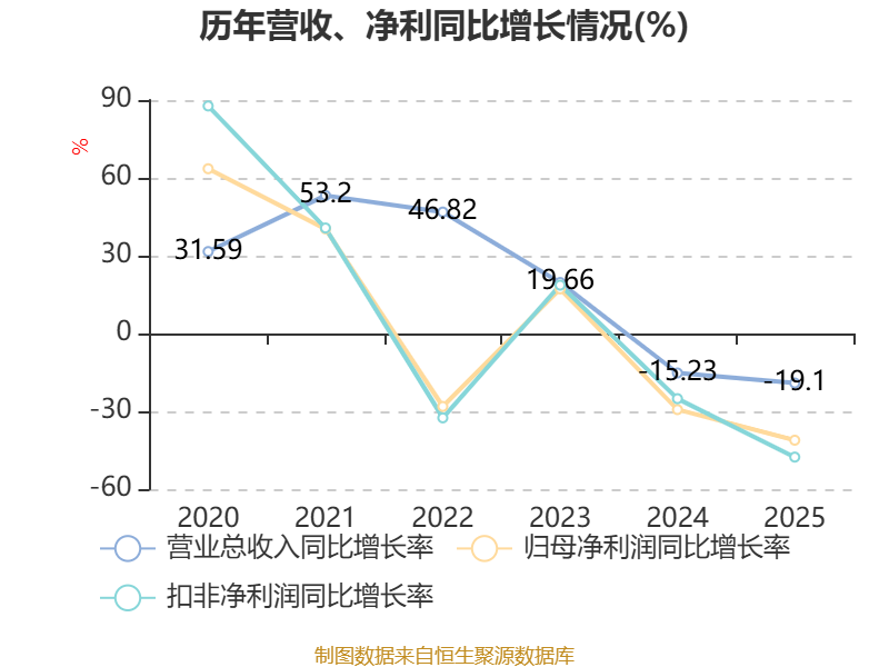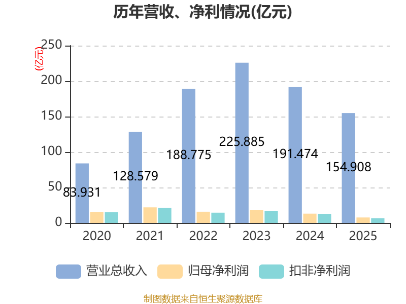 中证智能财讯福斯特(603806)4月9日披露2025年年度报告。2025年,公司实现营业总收入154.91亿元,同比下降19.10%;归母净利润7.7亿元,同比下降41.14%;扣非净利润6.71亿元,同比下降47.65%;经营活动产生的现金流量净额为14.62亿元,同比下降66.68%;报告期内,福斯特基本每股收益为0.3元,加权平均净资产收益率为4.72%。公司2025年度分配预案为:拟向全体股东每10股派现1.5元(含税)。