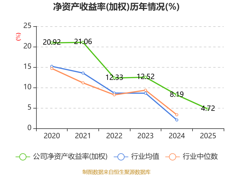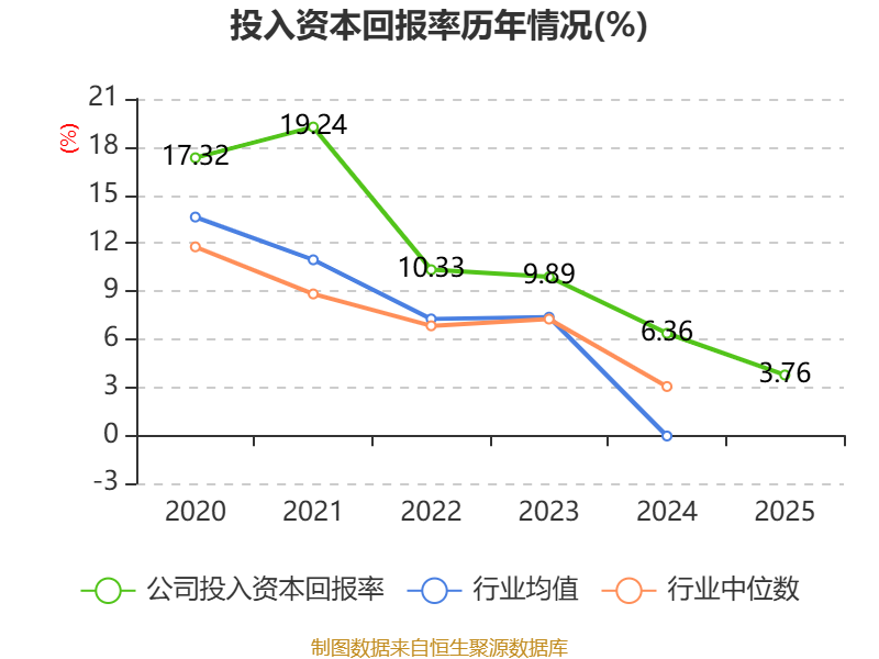 数据显示,2025年公司加权平均净资产收益率为4.72%,较上年同期下降3.47个百分点。公司2025年投入资本回报率为3.76%,较上年同期下降2.6个百分点。