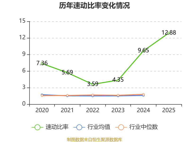 2025年,公司流动比率为14.4,速动比率为12.88。