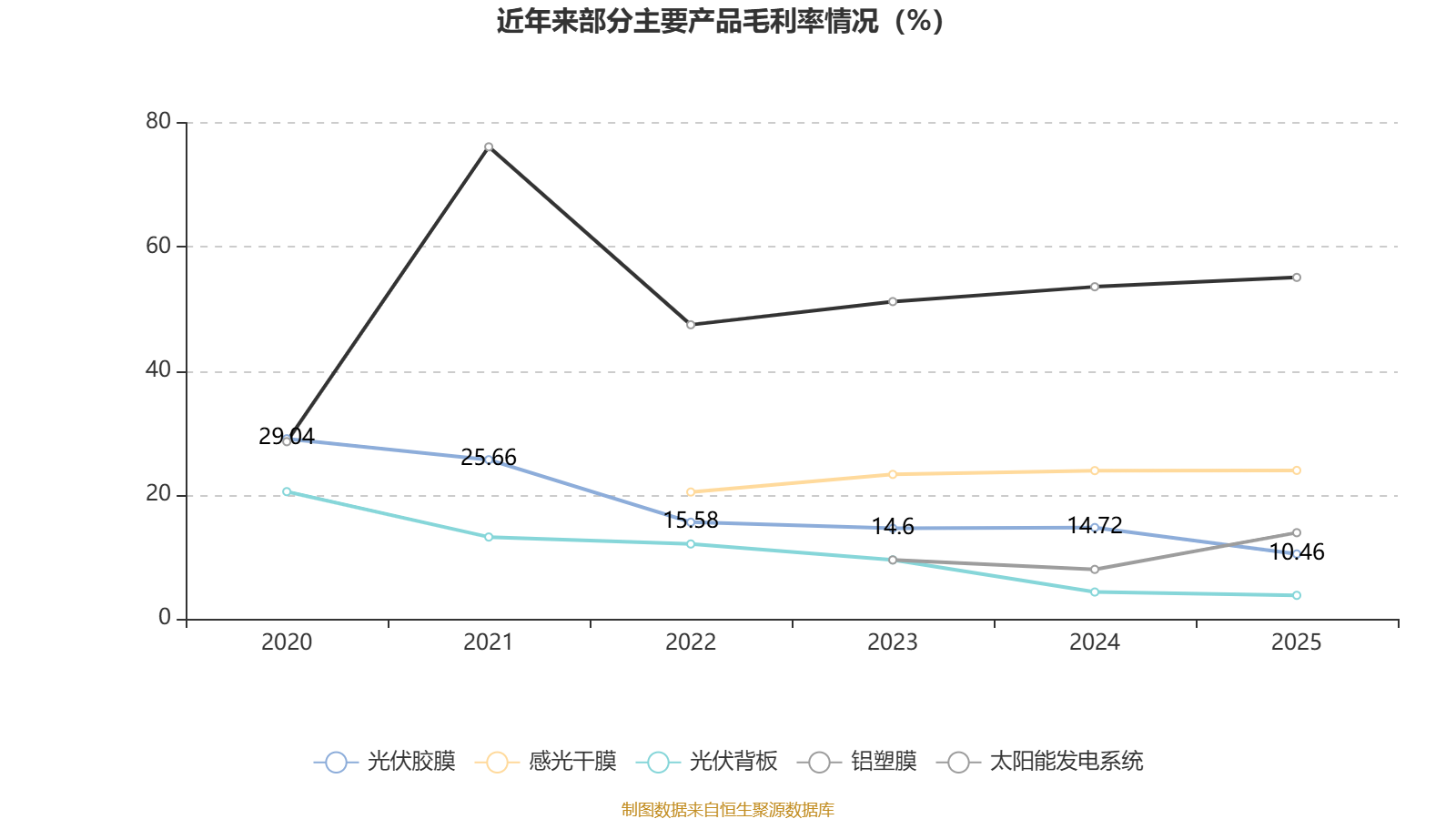 资料显示,公司主要从事太阳能电池胶膜、太阳能电池背板、感光干膜等产品的研发、生产和销售。