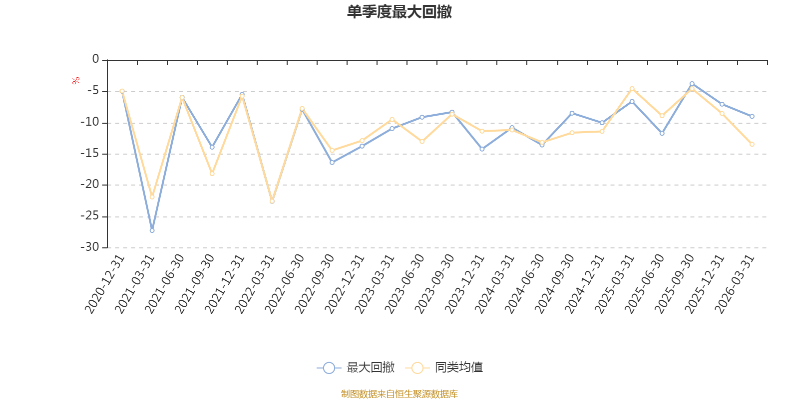 截至4月7日,基金近三年最大回撤为25.21%,同类可比基金排名4/75。单季度最大回撤出现在2021年一季度,为27.26%。