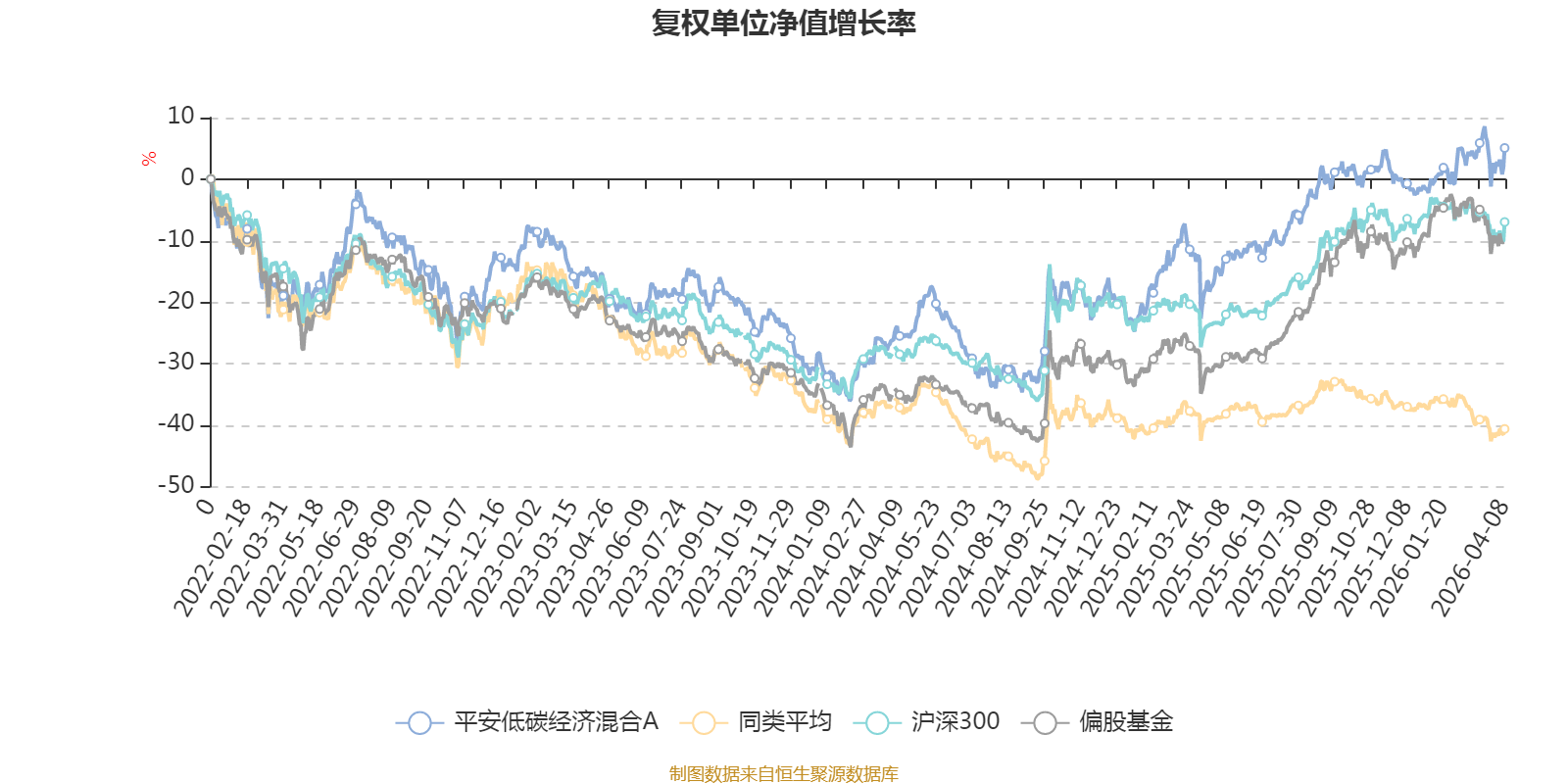 截至4月8日,平安低碳经济混合A近三个月复权单位净值增长率为5.75%,位于同类可比基金3/85;近半年复权单位净值增长率为2.62%,位于同类可比基金3/85;近一年复权单位净值增长率为32.53%,位于同类可比基金2/85;近三年复权单位净值增长率为24.02%,位于同类可比基金2/76。