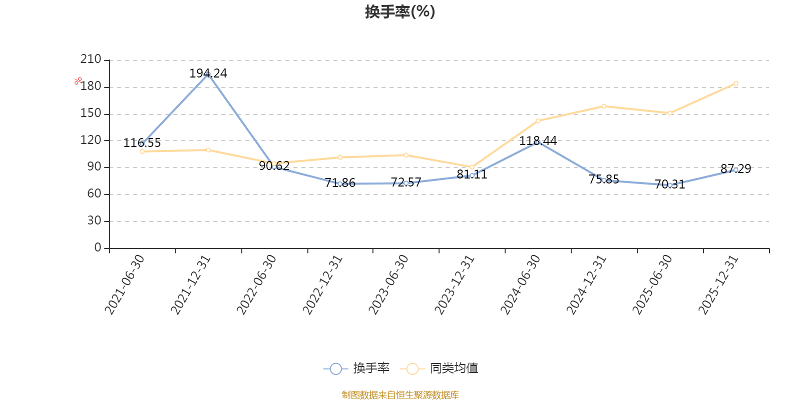 截至2025年12月31日,基金最近一年换手率约156.96%,持续4年低于同类均值。
