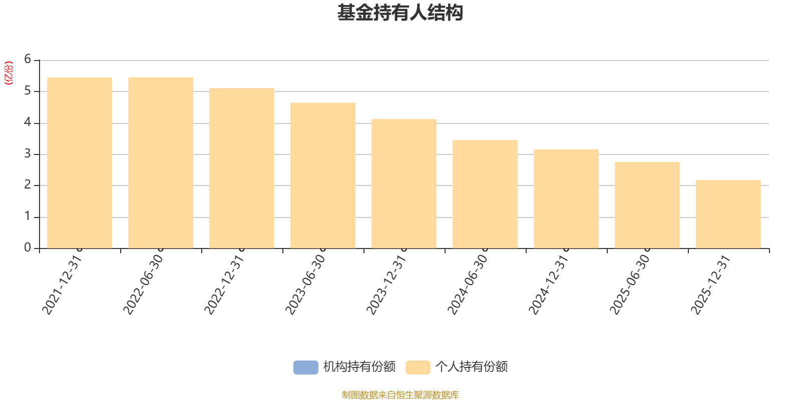 截至2025年12月31日,基金持有人共计1524户,合计持有2.18亿份。其中管理人员工持有12.85万份,占比0.06%,机构持有份额占比0.00%,个人投资者占比100.00%。